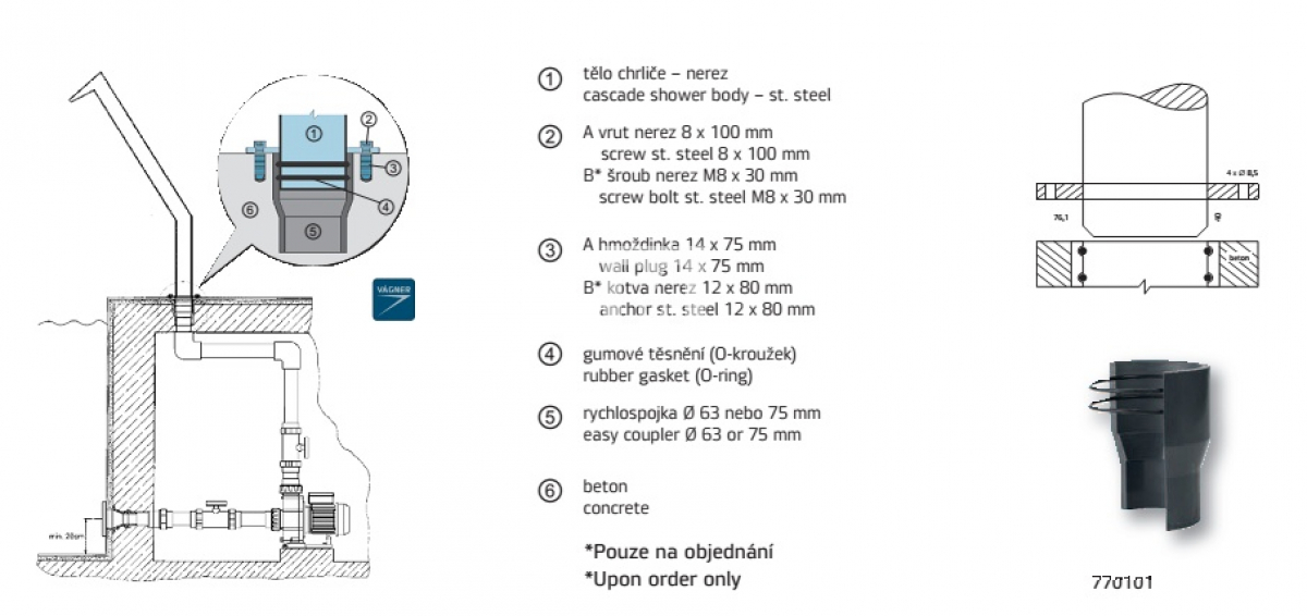 - Druhy napojenia: Ø 63 mm alebo Ø 75 mm